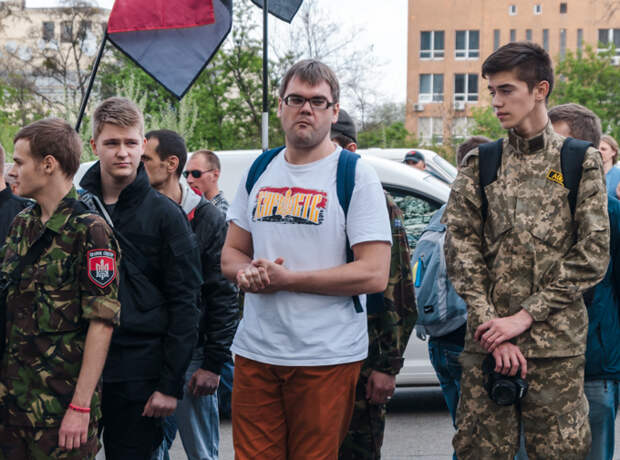 «Мы помним, на чьей крови зашли на Банковую эти гниды – на нашей крови, на крови этих людей («Небесной сотни»), – сказал в своей речи перед строем представитель «Правого сектора».