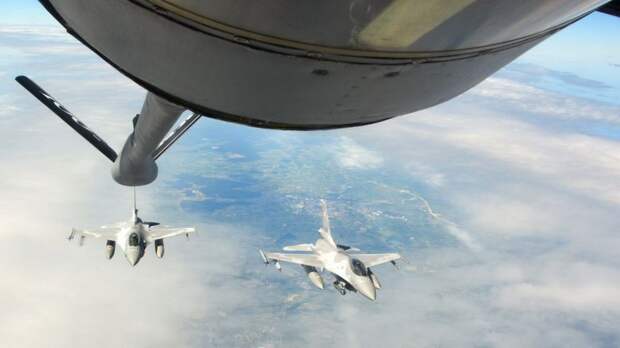 Дозаправка в воздухе - обычное упражнение для авиационных учений. На этом снимке американский танкер заправляет польский истребитель в воздухе на учениях в 2016 году
