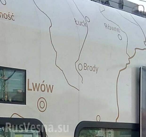 В Польше на картах, нарисованных на поездах, города Львов и Ровно уже отмечены как польские.