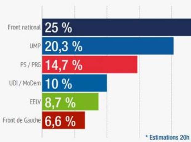 Впервые в истории Национальный фронт на общенациональных выборах набирает более 20% голосов, - отмечают наблюдатели. Один из соратников Марин Ле Пен Флориан Филиппо сразу после объявления результатов экзит-полов назвал победу «исторической», а Национальный фронт – первой партией Франции.
