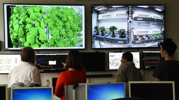 Арктическая теплица контролируется из Бремена. Датчики отображают температуру, влажность, кислород и уровень углекислого газа, а камера регулярно фотографирует все растения. На восьми полках прорастают пышные зеленые салаты, цветущие растения томатов, базилик, лук, петрушка, огурцы, кольраби и руккола.