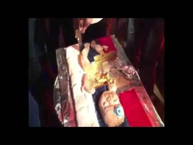 В киевском «BarHot» гостей одной из вечеринок угощали тортом, испеченным в виде младенца, лежащего на флаге РФ.