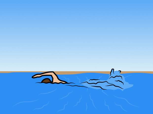 Но надо знать, что такое течение чаще всего движется в разных направлениях, а не только от берега в сторону моря. Поэтому, стараясь, чтобы вас не относило, плывите перпендикулярно течению, меняя направления.
