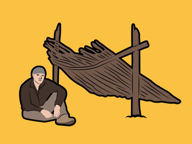 Надо защитить себя от ветра, а также позаботиться о теплой подстилке-кровати, чтобы не замерзнуть на холодной земле ночью.