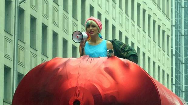 В Торонто, как отмечается в статье, Толоконникова осталась «верна своему прошлому». Она прокатилась в огромной ракете с красной боеголовкой. В общем, пишет Blogwrath, ее средство передвижения выглядело как «гигантский пенис». При этом, отмечает издание, во время движения она выкрикивала время от времени «вдохновляющие» слова. Позади же нее находился жуткого вида парень в маске, одетый в российскую военную форму.