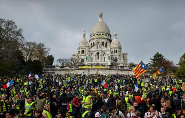 «Желтые жилеты» заняли ступени, ведущие к базилике Сакре-Кёр. 23 марта 2019 года, Париж, Франция. Фото: Киран Ридли.