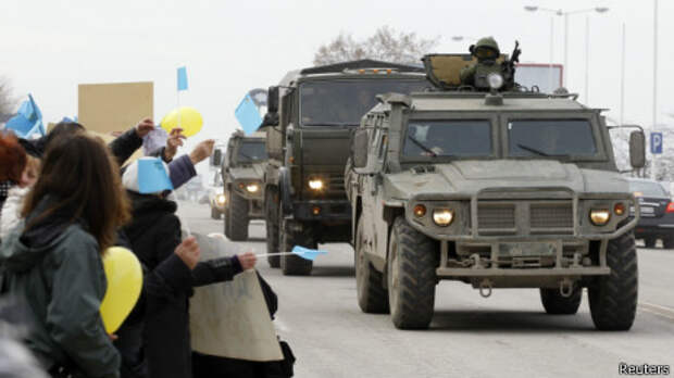 В самом Крыму продолжается захват военных объектов вооруженными людьми в военной форме без опознавательных знаков, называющими себя силами самообороны Крыма.