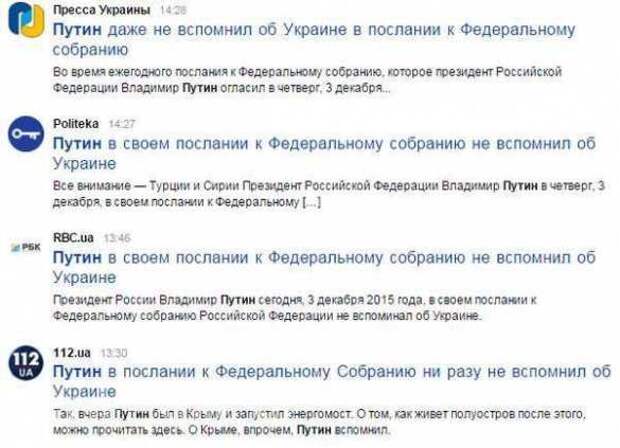 Украинские журналисты были опечалены и буквально шокированы тем, что президент России Владимир Путин в своем послании к Федеральному собранию РФ ни словом не обмолвился об Украине.